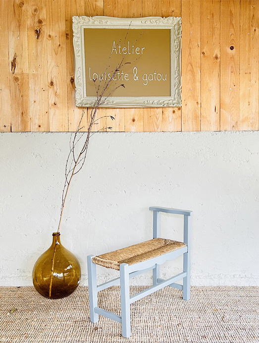 À l’atelier Louisette & Gatou, chaque projet passe par plusieurs étapes : nettoyage, ponçage manuel, traitement contre les vrillettes, réparations, peintures et application de finitions durables.