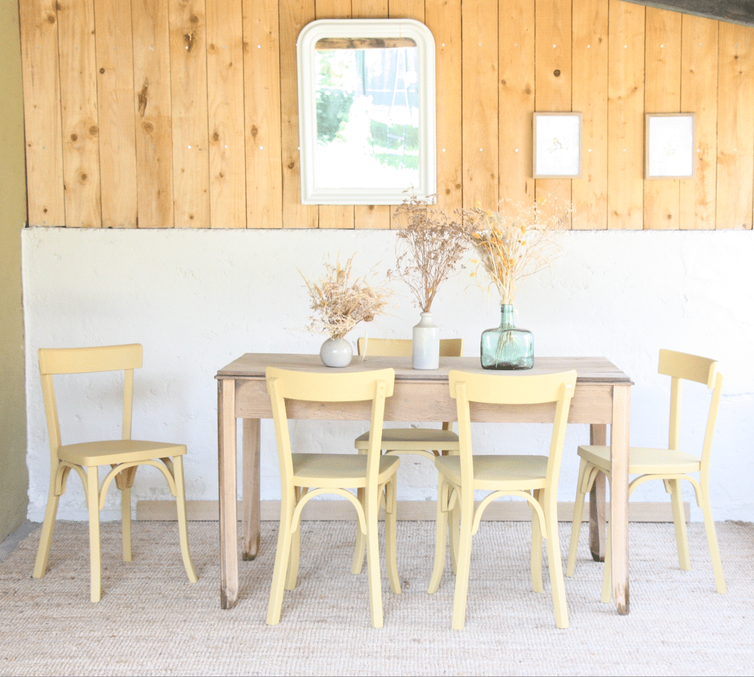 À l’atelier, chaque pièce est rénovée à la main avec soin en gardant son âme et son style d’origine. Je travaille avec des matériaux de qualité : peintures écologiques labellisées Écolabel, finitions durables, des produits respectueux du bois et du temps.